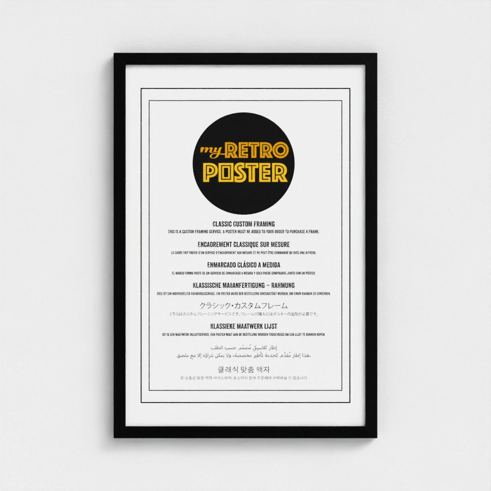 تحول إطاراتنا المصممة خصيصًا ملصق السفر العتيق الخاص بك إلى عمل فني جاهز للتعليق. كل إطار مصنوع يدويًا، ومغلق، ومغطى بزجاج أكريليك بجودة المتاحف لضمان جمال وحماية تدوم طويلاً. اطلب التأطير الكلاسيكي مع ملصقك واستلمه مؤطرًا — جاهزًا ليزين جدارك.