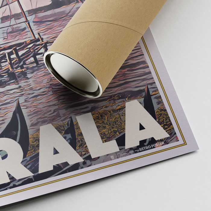 Hängen Sie Kochi-Poster mit Fischernetzen auf und bereichern Sie Ihre Inneneinrichtung mit einem Reiseposter im Vintage-Stil.