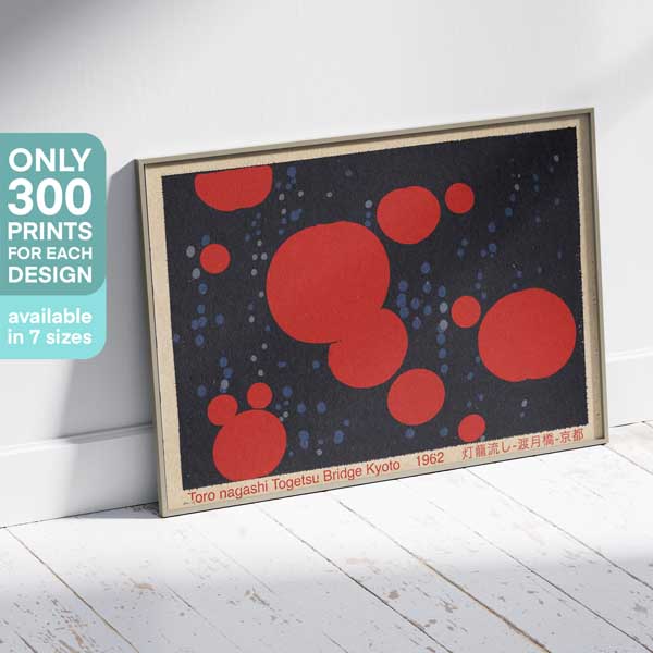 Toro Nagashi Poster is an original limited-edition art print (300 prints + 3 artist proofs) created and commercialized exclusively by MyRetroposter. This artwork is part of the Vintage Exotics™ collection and is protected under international copyright laws. Reproduction, digital copying, commercial use, or resale — in whole or in part — is strictly prohibited without written permission from the artist or publisher. Each poster remains the intellectual property of its creator. Any unauthorized commercial use, reproduction, or resale of this artwork is strictly prohibited and will be prosecuted under international copyright laws. You’re welcome to share photos of your purchased poster — whether at home, in a hotel, restaurant, or shop — as long as the artwork itself is not copied, digitally reproduced, or used for advertising purposes without permission. For licensing inquiries or partnership requests, please contact us. Learn more on our Copyright & IP Notice page.