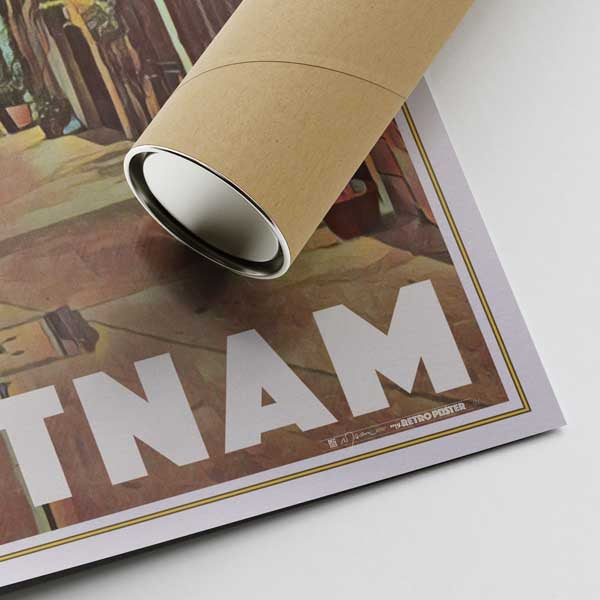 This retro poster of Vietnam is an Original Edition printed from the artist's master (file), it's not a photo and all noise, grain, vintage effects are part of the design.
