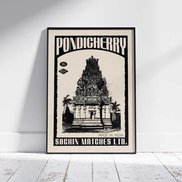 © Shree - The Great Indian Decor™, 2017-2021. PONDICHERRY Vintage Indian Matchbox Poster design may be shared online, but may not be reproduced in print or any other media without written permission.