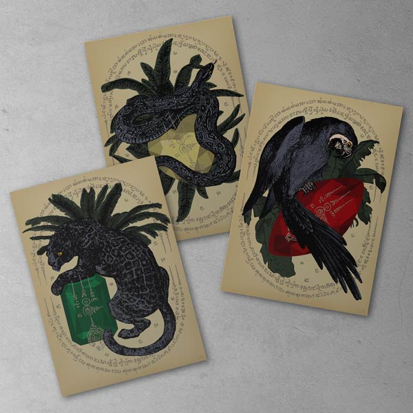 Questo pacchetto comprende il Poster Sak Yant Giaguaro, il Poster Sak Yant Pappagallo e il Poster Sak Yant Pitone.