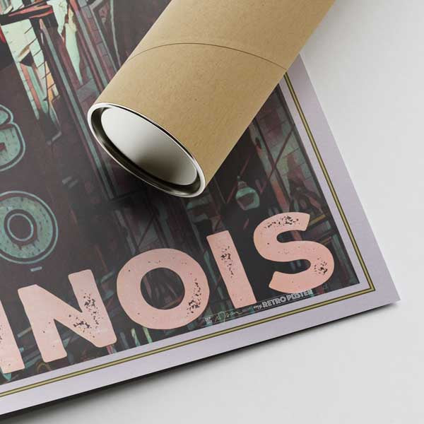 Questo poster retrò di Chicago è un'edizione originale stampata dal master (file) dell'artista, non è una foto e tutto il rumore, la grana e gli effetti vintage fanno parte del design.