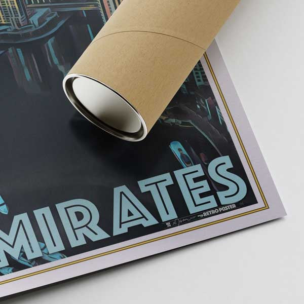 Poster di Dubai Panorama, Poster di viaggio a Dubai di Alecse™ © MyRetroposter , 2017-2024 .
