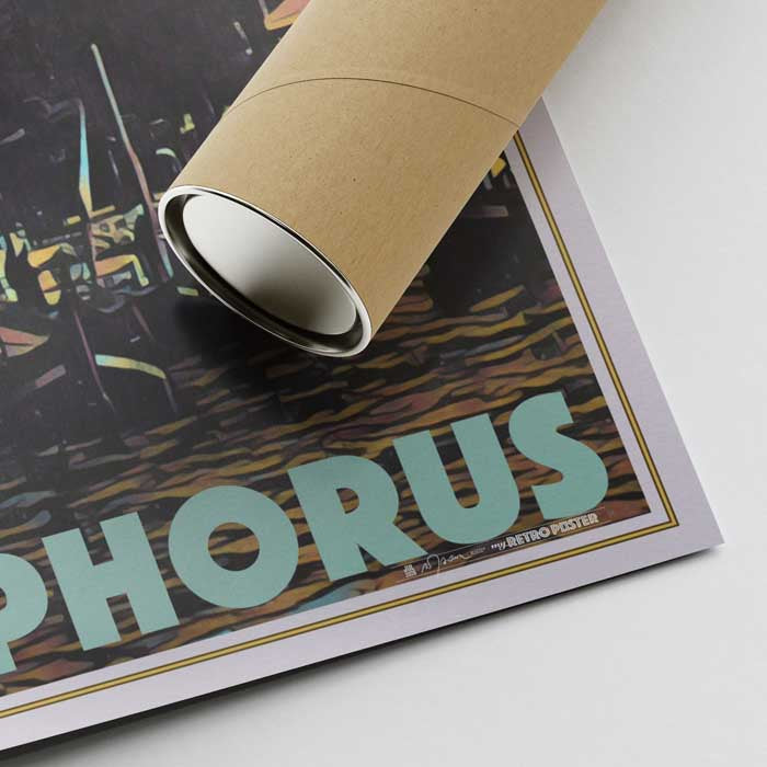 イスタンブール ポスター ボスポラス海峡、トルコ ヴィンテージ トラベル ポスター Alecse™ © MyRetroposter、2017-2024。