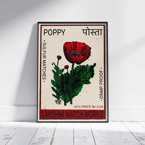 © Shree - The Great Indian Decor™, 2017-2021. POPPY Vintage Indian Matchbox Poster design may be shared online, but may not be reproduced in print or any other media without written permission.