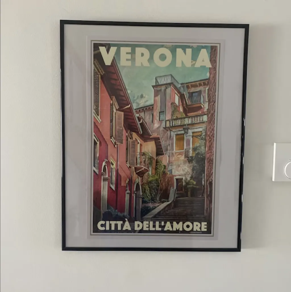 Hang Verona Poster City of Love and enhance your home decor with a vintage inspired travel poster.
